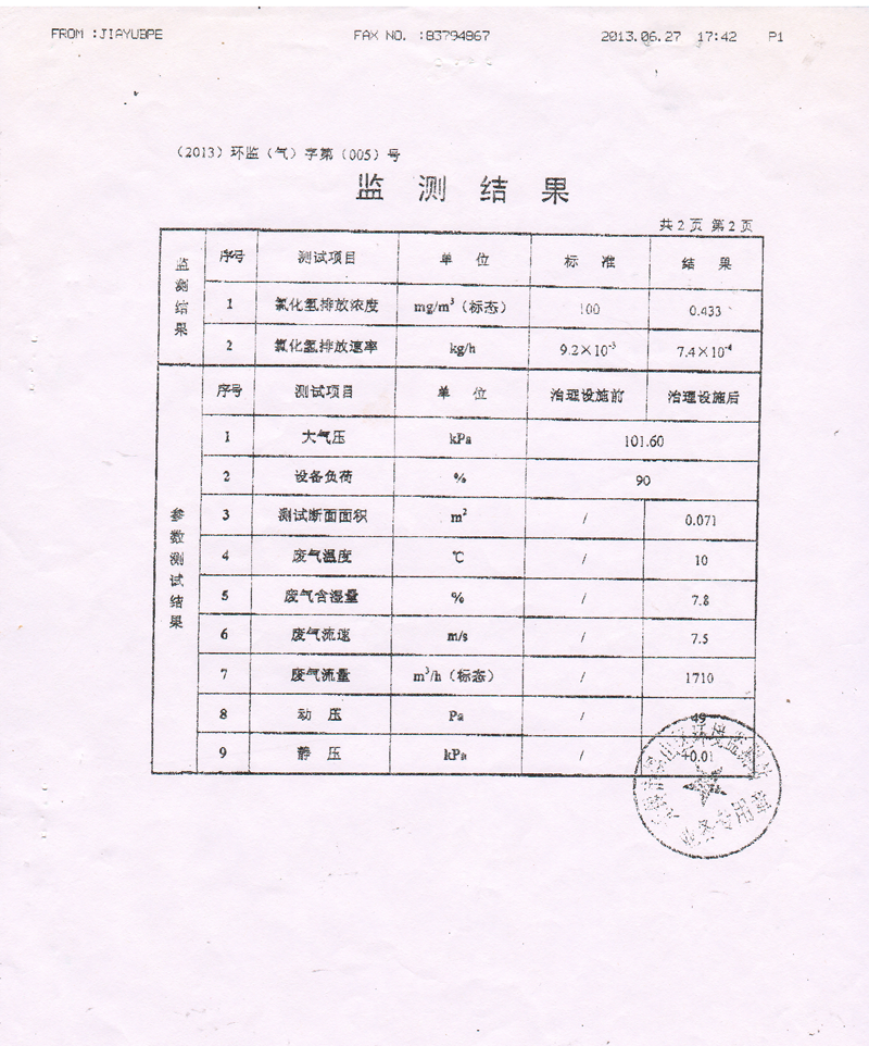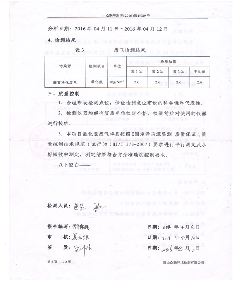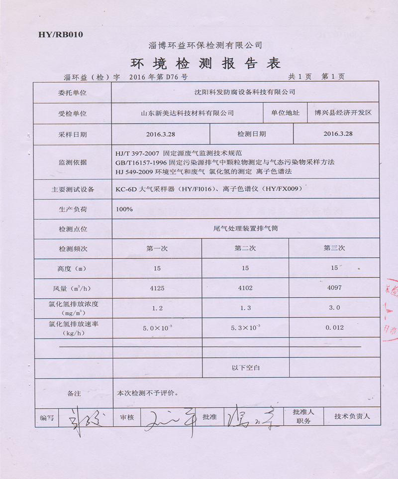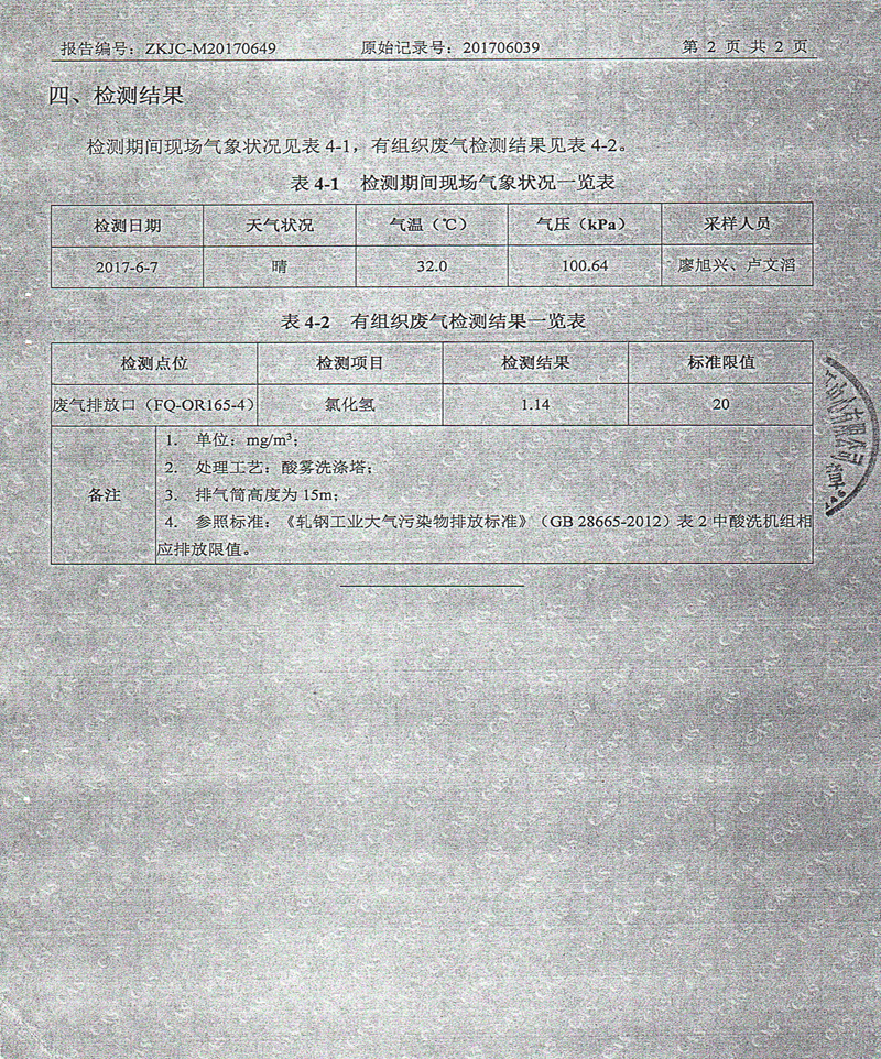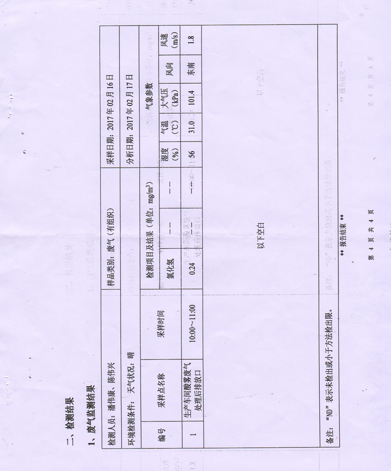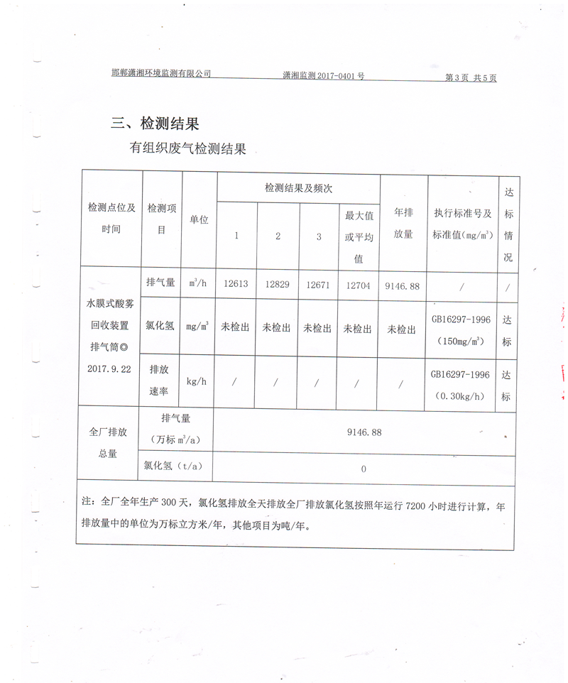 檢測結(jié)果中未檢測出HCL氣體,國家標準為小于30mg/m3